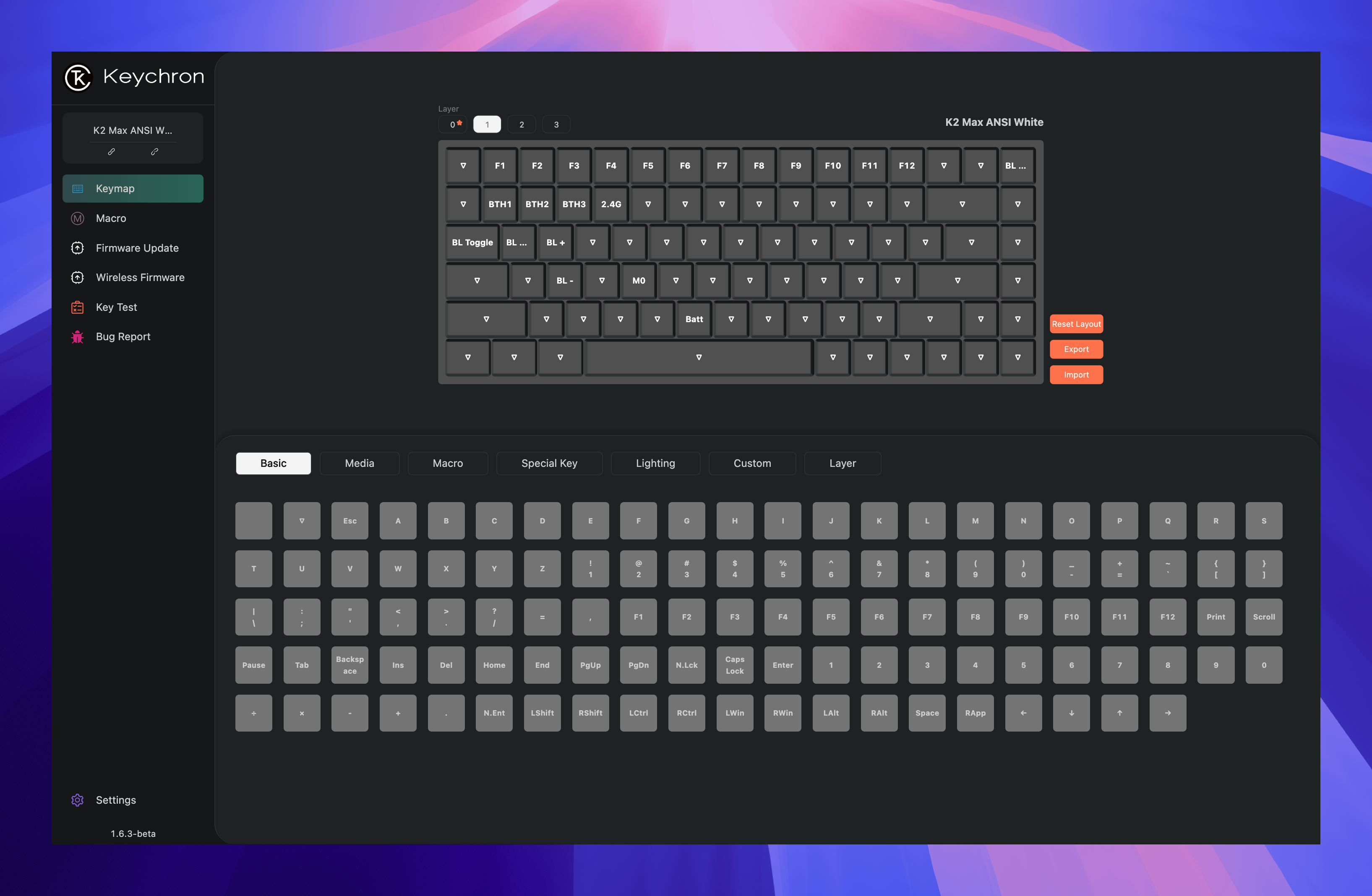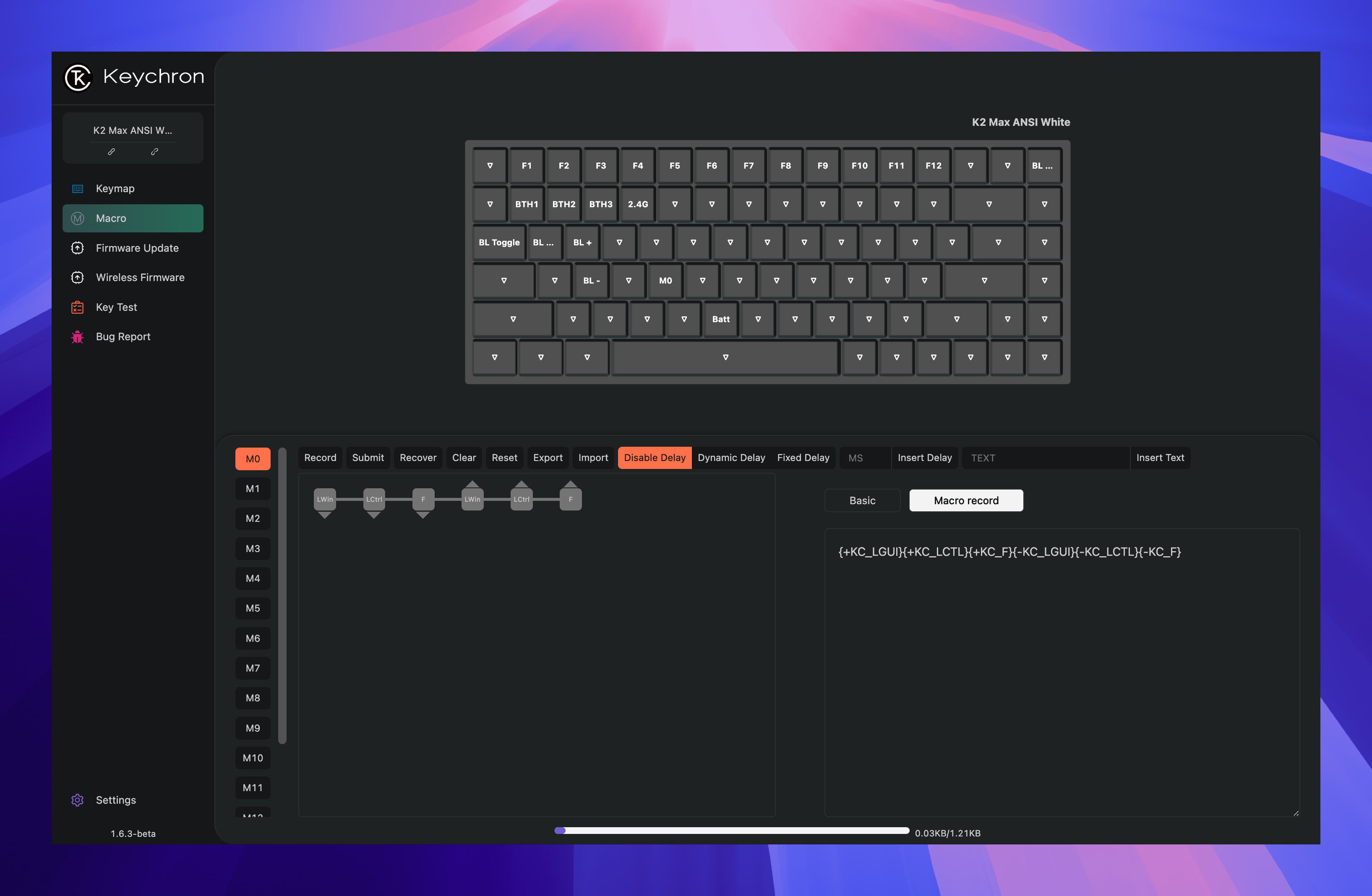 Keyboardfrom the left sidebar, chooseLayer 1, and map theFkey to the corresponding macro (M0in this example).